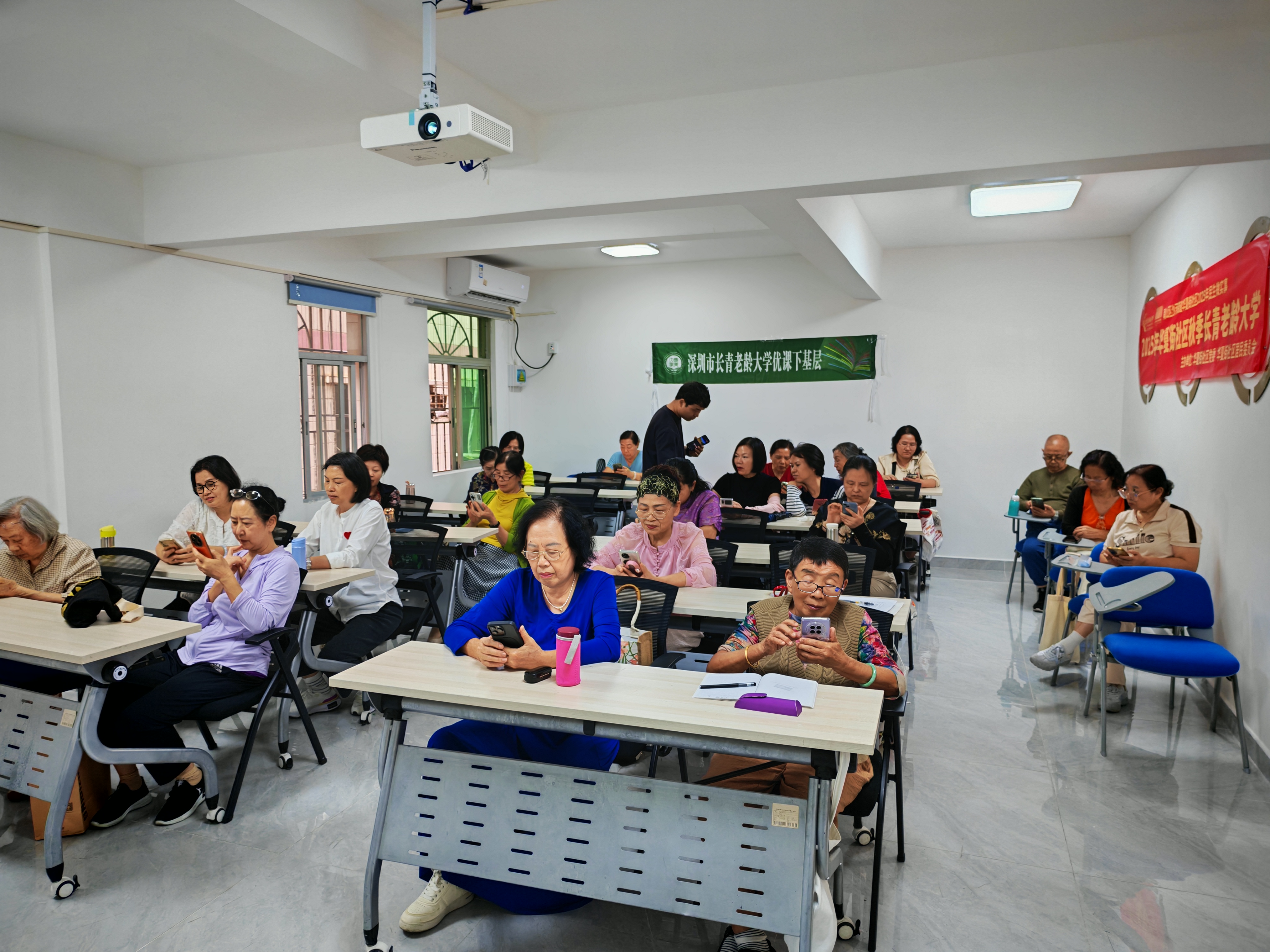 2025年12月4日,由深圳市长青老龄大学主办的“长青优课下基层”手机摄影课程,在沙河街道指导下,于华夏街社区顺利结课。本次课程为期一学期,共计十六周,通过系统教学与外出实践相结合的方式,帮助社区老年人掌握手机摄影与短视频制作的基本技能,丰富其精神文化生活,跨越“数字鸿沟”。