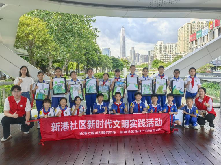 活动尾声,由社区工作者、教师、志愿者组成的评委组从创意、色彩、意境等维度评选出5幅优秀作品,为获奖学生颁发定制奖品与荣誉奖状。捧着奖状的孩子们笑容灿烂,“我画了新洲河的小鱼和芦苇,以后要常来这里写生!”一名学生的话,道出了活动传递的生态情怀与乡土记忆。
