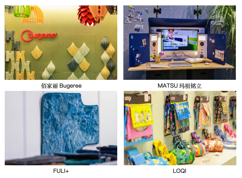 商用设计板块中,设计公司、材料厂商、办公家具品牌等纷纷呈现卓越之作。House of Forme浩坊设计带来衍生品牌AMMA OBJECTS游牧系列家具;MATSU玛祖铭立带来数字游牧、原生纪元等系列,以环保及模块化设计支持多场景办公方案。由香港工业设计师协会主办的ReMIX丨融·创未来于现场展出香港专业设计师与优质品牌联名打造的家居、电子等产品,积极推动大湾区设计产业协同发展。FULI+带来采用ECONYL®纱线打造的“AUTO PADS” 系列汽车用毯;PET声学材料行业引领者Burgeree佰家丽、可再生植物基材料ecowel素韦®、DECODECO树脂玻璃等带来最新的材料与工艺;将创意与可持续结合,德国LOQI带来采用100%可再生聚酯纤维面料的艺术联名包袋。
