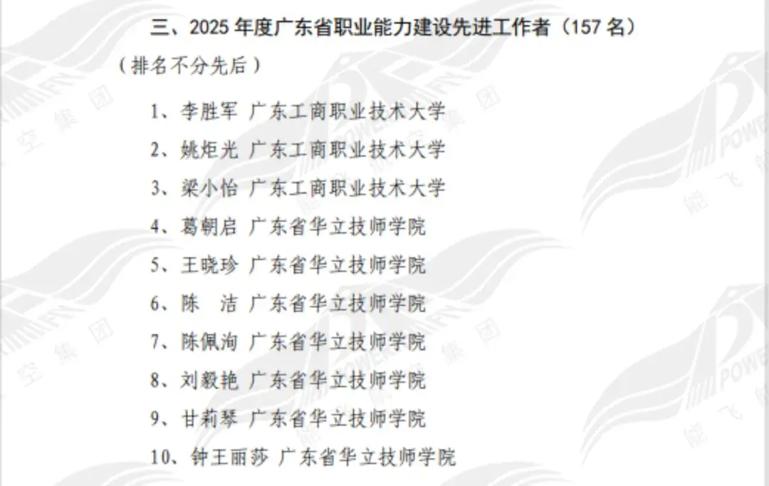 2025年度广东省职业能力建设先进工作者