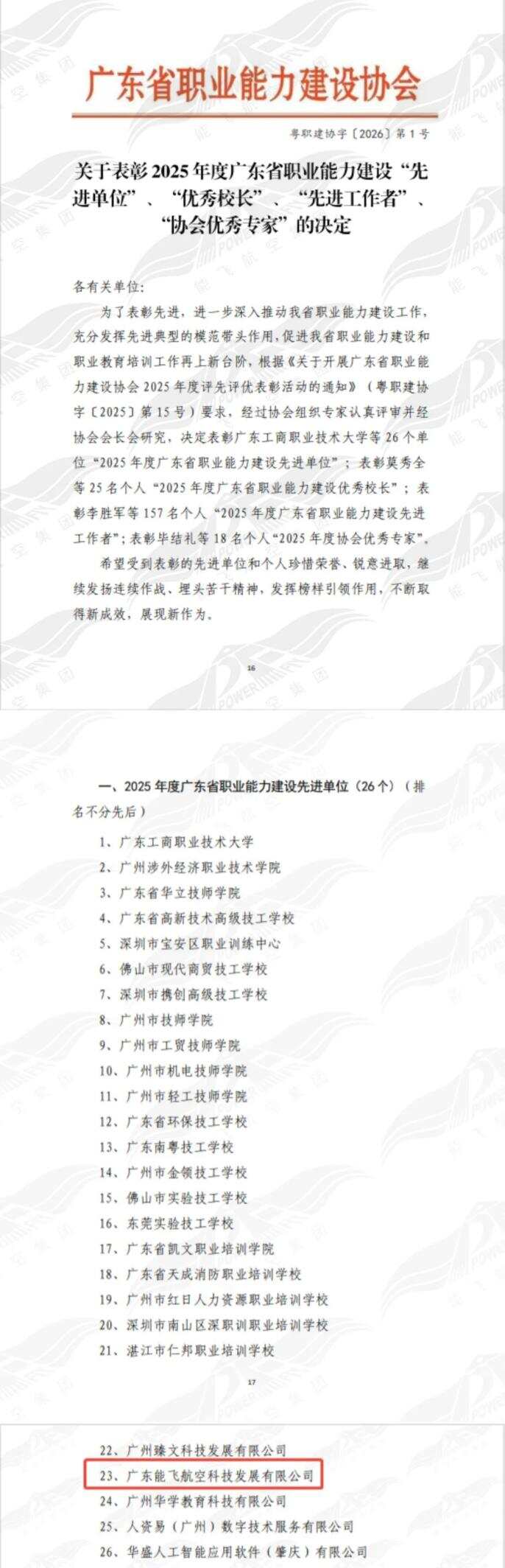 近日,2025 年度广东省职业能力建设相关表彰结果正式公布,能飞航空凭借在无人机培训领域的深耕积淀与专业实力,成功荣获“广东省职业能力建设先进单位”称号。这份省级荣誉,既是对能飞在职业技能人才培育工作中不懈努力的高度认可,更是对企业深耕无人机培训赛道、助力行业人才建设的权威肯定。
